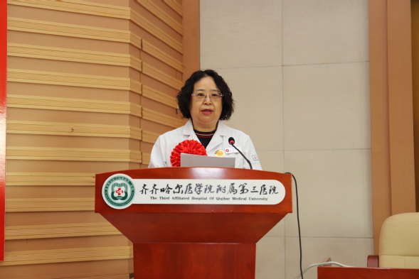 学院副院长、党委常委毕红霞发表讲话,她代表齐齐哈尔医学院,向“第三届齐齐哈尔医学院名医”的获得者表示热烈的祝贺,向奋战在疫情防控和医疗救治一线的我院医务工作者致以崇高的敬意。学院副院长、党委常委毕红霞表示,此次颁奖盛会,力度大、含金量足,这充分彰显了学院办特色医科大学、创一流“学术型”医院的初心,展现了学院筑牢人才新高地、集聚发展新动能的信心,体现了学院创造最优环境、提供最强保障的决心。学院副院长、党委常委毕红霞希望我院广大干部职工以非常的担当、非常的力度、非常的举措,切实做好以下三个方面的重点工作:一是全员夯实思想之基,打响为民服务主动战。一定要不忘医者初心,孜孜以求,精益求精,不断攀登医学高峰,更好地肩负起健康卫士的责任担当;一定要牢记为民使命,视患如亲人,热情服务,聚焦人民群众看病就医的“急难愁盼”问题,不断改善服务质量,切实提高群众就医幸福感;一定要扛起各项工作职责,负重前行,不断创造新业绩,努力开创新局面;二是全力筑牢疫情防线,打好疫情防控持久战。要认清当前疫情防控形式的复杂性、严峻性、长期性,坚决克服麻痹思想、厌战情绪、侥幸心理和松劲心态,不仅要做好打持久战的准备,更要有坚决打赢新一轮疫情防控阻击战的决心,全身心履职尽责守护好人民群众生命安全和身体健康;三是全速推进高质量发展,打赢提质增效攻坚战。要全面落实党的教育和卫生健康工作方针,坚持以人民健康为中心,以三级公立医院绩效考核为导向,以建设高水平“学术型”医院为目标,强化体系创新、模式创新、管理创新、技术创新、服务创新,不断加强内涵建设,推动高质量内涵发展,切实为人民群众提供优质高效的医疗卫生服务,奋力书写好医疗卫生事业发展的新篇章。