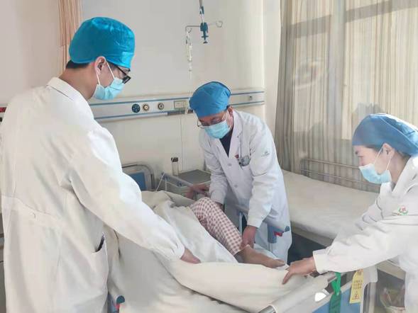 骨外二科主任田少华是外科第三党支部的优秀党员代表,手术技术精湛,开展了许多疑难险重手术,术后康复锻炼更是患者恢复的关键步骤。在田少华主任的带领下,秉承“三分治疗,七分锻炼”的理念,结合每位患者病情“量体裁衣”,党员志愿者小组对每一位即将出院的患者,进行个性化床旁指导患者功能锻炼。患者回家以后,按照这些指导,能够有效促进血液循环,缓解局部肿胀,防止关节粘连与僵硬,预防血栓形成等多种并发症,使得治疗取得良好预期。