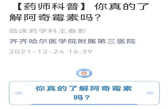 党员王春影为患者定期科普用药常识。对于在药学门诊提问的患者,王春影都会耐心的给予讲解,得到了患者和家属的一致好评。