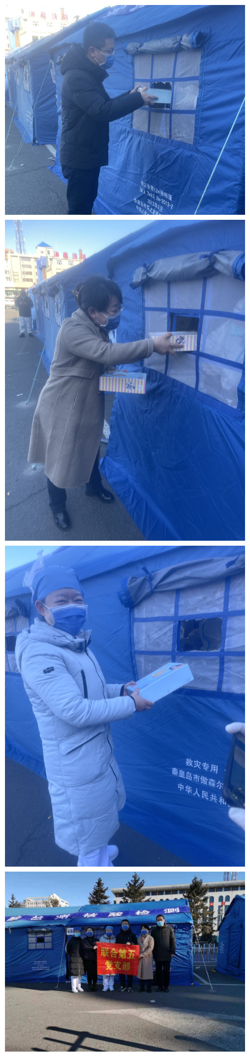 活动中,支部书记苍春阳带领支部委员以及护理部冉淑杰、李晓红护士长为队员们送去了精挑细选的电热宝。在了解队员们工作情况时,得知队员们因室外温度低,存在脚下易冷、防护面屏上霜易碎等实际困难。支部书记苍春阳与护理部进行研究后,支部马上又为队员们送去了保温板、泡沫垫等防寒物品。队员们纷纷表示感谢医院党委和联合第五党支部的关心,大家一定能克服困难,为鹤城百姓平安筑牢第一道防线。