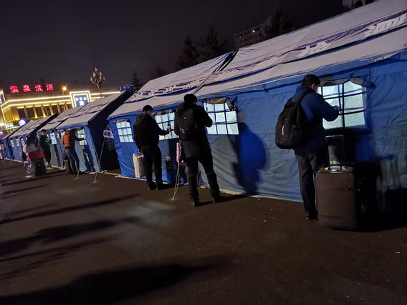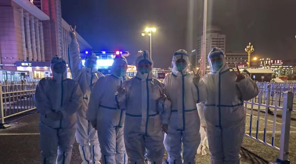 3月的东北寒气逼人,尤其到了深夜似乎穿得再厚也不能抵挡严寒。市政府为队员们提供了取暖设施,医院为队员们准备了充足的物资,我院联合第五党支部也为队员们送来了电热宝,天气虽然寒冷,但队员们的心却无比温暖。每一名队员都深知责任在肩,本着对生命敬畏、对群众负责的态度,任劳任怨、倾尽全力,力求保质保量完成核酸采样任务。夜幕降临,天空飘起了雪花,每位旅客都是非常焦急地等待回家,队员们自觉地加快了录入和采集的节奏,很多旅客在离开的时候都暖暖地送上一句“你们辛苦了”。