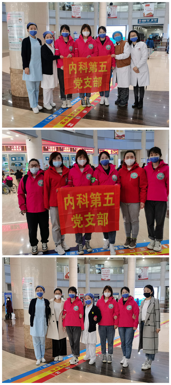 内科第五党支部参加此次援哈抗疫医疗队的同志有张子英、李洋、姜西、景淼、陈雨婷、李秀玲。张子英同志曾是我院第一批援鄂抗疫医疗队队员并多次参加支援抗疫工作;李洋同志在2021年曾支援过巴彦县、黑河市抗疫工作,以及核酸采集工作;景淼同志作为支部纪检委员,一直以党员的标准严格要求自己,与李秀玲、姜西多次支援参加核酸检测工作;陈雨婷同志,这已不是她第一次出征了,因父母身体不好,此次支援她又一次向父母隐瞒出征的消息。她们是党员,是积极分子,她们虽然年轻,但已多次参加支援抗疫工作,她们舍小家为大家,用自己的行动彰显着党员和附三人的风范。