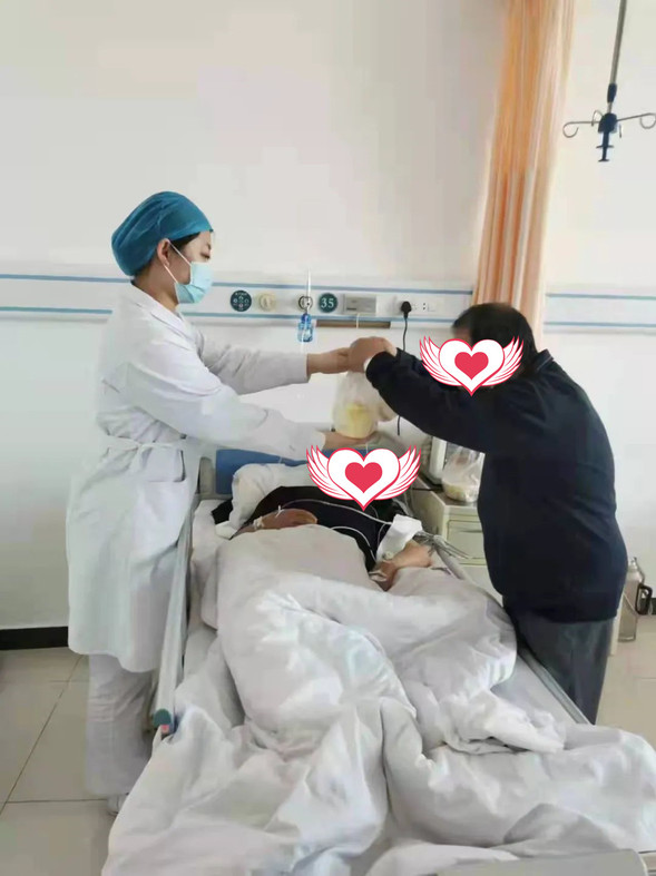 由于患者和陪护年龄都比较大,不会使用手机,从坐火车到医院再到完成手术的30多个小时,一直未进食,胸心外二科的医护人员了解到老人的情况后,主动为他们买来了饭菜,并由护士喂患者吃下。