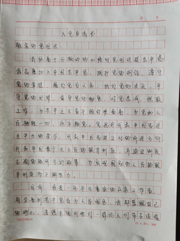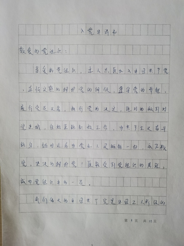 “本人庄严宣誓:我志愿加入中国共产党,愿意为实现共产主义奋斗终身......”,“敬爱的党组织,本人志愿加入中国共产党,真情实感地拥护党的纲领,遵守党的章程,履行党员义务,执行党的决定......”,“我随时准备着为共产主义事业而奋斗,为党和人民牺牲一切,永不叛党......”。这三封入党申请书是我院援哈抗疫医疗队队员们在抗疫一线郑重写下的。