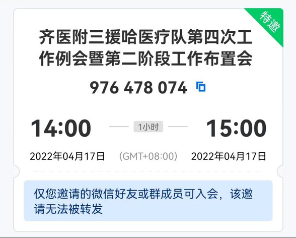 4月17日14:00,我院援哈抗疫医疗队以线上形式召开第四次工作例会暨第二阶段工作布置会。医疗队领队、副院长杨钰出席并主持会议,全体医疗队员参会。