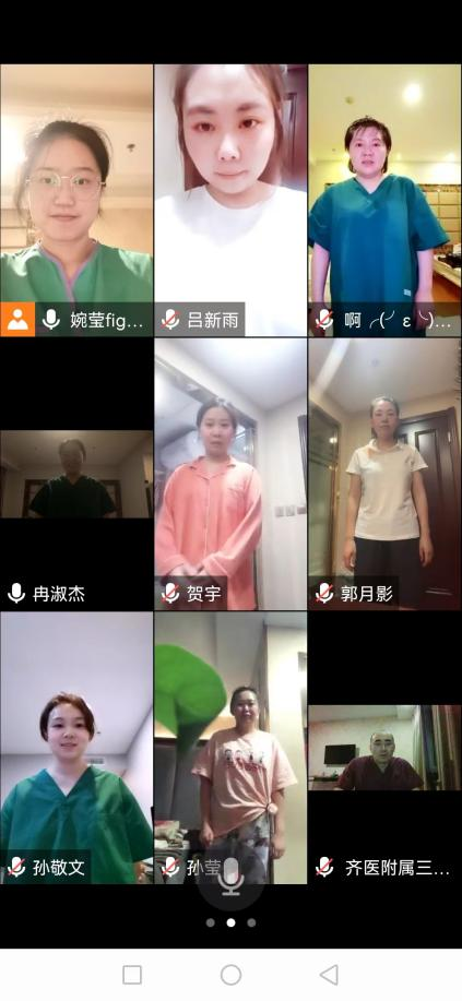 5月12日,是第111个国际护士节,也是我院援哈抗疫医疗队圆满完成支援任务返齐集中医学隔离的第八天。19时,我院援哈抗疫医疗队线上举行“好声音巅峰之夜”歌会,我院护理部主任李丽及全体医疗队员线上参与歌会,副领队刘亮亮、队员张宇佳主持歌会。
