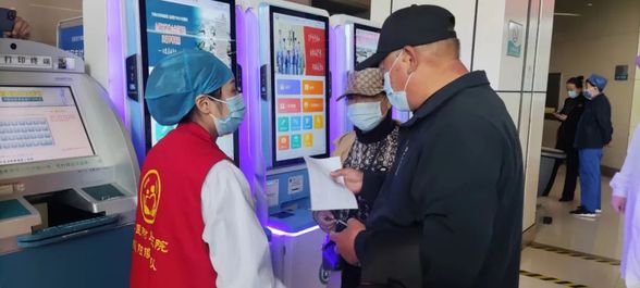 齐医附属三院成立“暖阳助老服务队”,专门为老年人提供服务,为不会预约挂号的老年人、不会使用自助机的老年人,暖阳助老服务队队员们手把手地教。