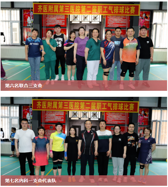 为了促进全民健身活动的开展,进一步丰富职工的文化生活,加强职工凝聚力,增进职工之间的沟通和交流,展示职工们良好的精神面貌,6月7日下午,为期二天的齐医附属第三医院第二届职工气排球比赛在医院体育馆拉开序幕。我院党委书记李玉雪,副院长孙茂林,副院长辜振刚,纪委书记董晓明和口腔医学院副院长刘旭之莅临现场参加比赛。