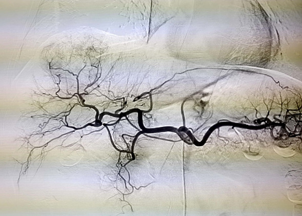 赵某来到介入科后,介入科主任刘琳、副主任莫庆国给予完善充分的检查与评估,并细心与患者交代:“放心吧,我们在你的血管里放根管子,用点药就能解决你的苦恼。”于是,患者如期进行了介入治疗,手术过程顺利,术后患者无不良反应,恢复快。