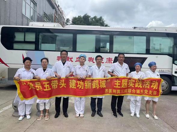 7月8日上午,我院联合二党支部和联合五党支部的党员同志们在献血活动现场,开展了“党员五带头 建功新鹤城”志愿服务主题实践活动,承担了我院113名“热血英雄”们的强有力的后勤保障,我院党委书记李玉雪同志以普通党员身份参加主题党日活动,并对参与献血的同志们表达了深切的慰问。