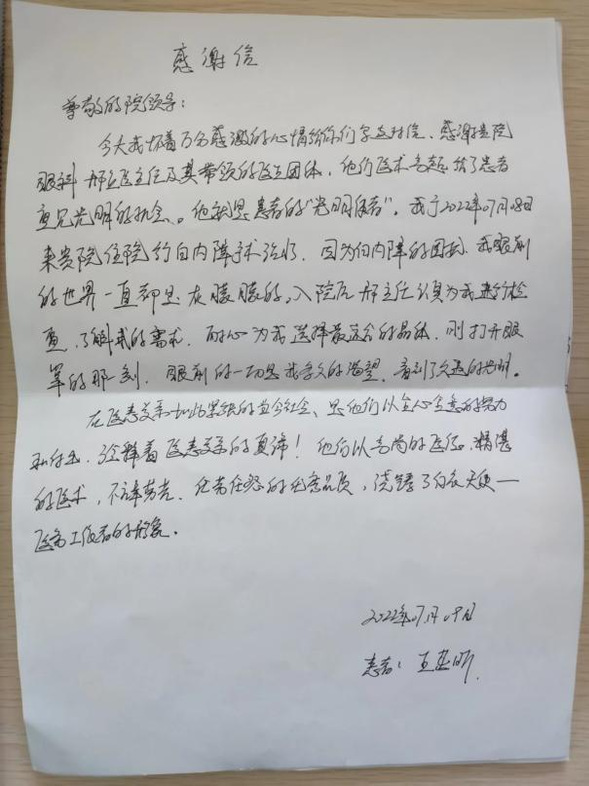 近日,我院眼科收到了两封来自白内障术后患者王茁昕及其家属的感谢信。
