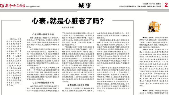 前不久,齐齐哈尔医学院附属三院心衰中心顺利通过国家级标准版心衰中心认证。对于多数人来说,心衰不算是一个生僻的医学名词,可心衰究竟是什么很多人却说不清楚。心衰是一种病吗?是代表心脏老了吗?心衰中心能给患者带来什么?带着这些疑问,记者走进了齐齐哈尔医学院附属三院心衰中心。