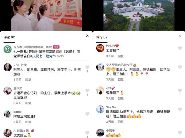 为庆祝中国共产党建党101周年,深入贯彻落实省第十三次党代会精神,齐医附属三院于“七一”来临之际推出《领航》MV。该作品在齐医附属三院官方微信公众号、视频号和抖音号等平台一经发布,便引起广泛关注,点击量累计近3万余次。极光新闻、龙头新闻、网信齐齐哈尔、铁锋区宣传部、看齐、新闻综合频道、交通广播等省市主流媒体纷纷转发。齐医附属三院以实际行动向建党101周年献礼,有力营造了喜迎二十大的浓厚氛围,取得了良好社会效应。