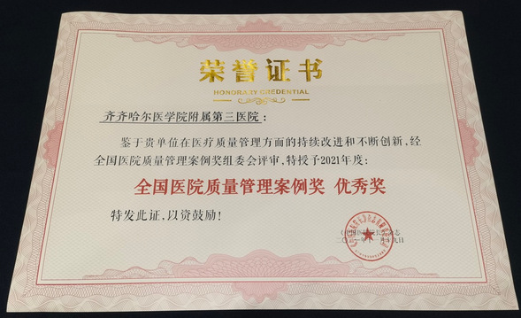 7月29日,在《中国医院院长》杂志主办的“全国医院质量管理案例奖”评选活动中,我院申报的质量管理案例经过初审、复审、现场调研等环节的层层甄选,从参赛的众多案例中脱颖而出。最终,我院案例获得2021年“全国医院质量管理案例奖”优秀奖,颁奖会议在第十六届中国医院院长年会上举行。