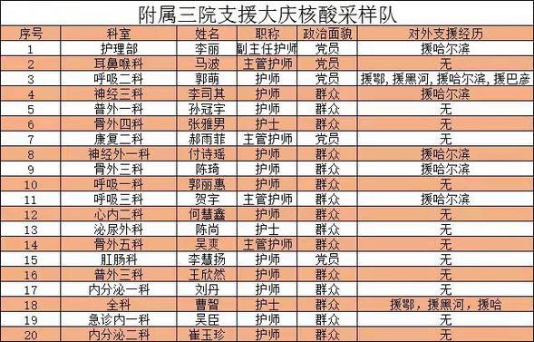 我院护理部主任李丽作为此次齐齐哈尔支援大庆核酸采样队领队,她表示,此次任务十分紧急,但队员们密切配合,相信附三人一定能发挥勇往直前的精神,圆满完成任务。
