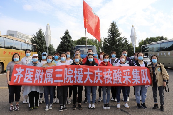 9月4日, 接到省应对新冠肺炎疫情工作领导小组指挥部办公室关于抽调医务人员支援大庆的紧急通知后,我院全力配合市疫情防控工作,积极响应市卫健委号召,闻令而动,在两小时之内火速集结一支由20名队员组成的支援大庆核酸采样队,下午4时准时奔赴大庆。市卫健委领导、学院副院长、党委常委毕红霞与我院领导班子成员在党政机关办公中心5号楼前为队员们送行。