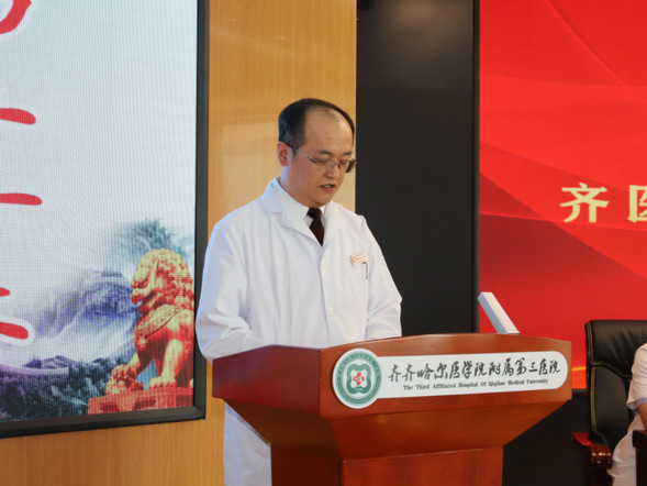 口腔医学院党总支书记齐占朋宣读《齐齐哈尔医学院口腔医学院关于表彰2021-2022学年教学工作先进集体和先进个人的奖励决定》,附属三院副院长辜振刚宣读《齐齐哈尔医学院关于2021-2022学年教学专项奖奖励决定》及《齐齐哈尔医学院第二届教师教学创新大赛奖励决定》,附属三院副院长杨钰宣读《齐齐哈尔医学院附属第三医院关于2021-2022学年临床教学系列奖励决定》,附属三院纪委书记董晓明宣读《关于表彰首届国家级全科专业住院医师规范化培训指导医师教学查房和教学门诊技能竞赛获奖教师的决定》《齐齐哈尔医学院附属第三医院关于表彰在黑龙江省首届住院医师规范化培训师生携手综合大赛获奖队伍的决定》《齐齐哈尔医学院附属第三医院关于奖励住院医师规范化培训专业基地的决定》《齐齐哈尔医学院附属第三医院关于奖励优秀住院医师规范化培训导师的决定》。附属三院、口腔医学院领导班子成员为获得表彰的先进集体和先进个人颁奖。