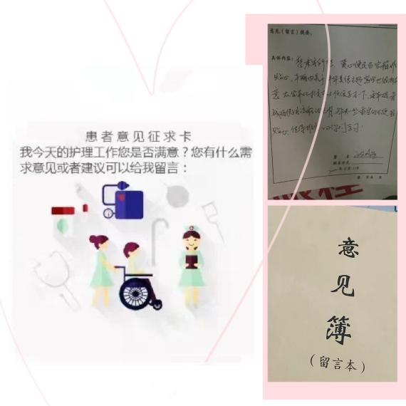 血管外科尽力做好“患者步入病区,来有迎声,见面有称呼声,询问有回声,操作前有解释声,操作中有询问声,操作失误有道歉声,操作完毕有应答声,患者康复有祝福声,患者出院有送行声”,做个热情有心会讲话的护士,做个让人相处舒服的护士,提倡住院全程倾听他们的心声,及时了解患者的需求和建议,并根据患者的需求不断地改进护理工作,血管外科制定了“病人需求、病人意见簿”充分了解每一位患者的需求,患者需要什么样的护理,血管外科就提供什么样的护理。