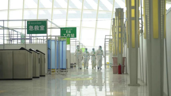 17日上午,医疗队通过对现场走流程的形式,与当地负责人进行了详细对接。从患者的转运流程、诊疗护理规范、电脑系统操作到环境消杀,做出了详细的工作规划,为顺利开舱做足了准备。
