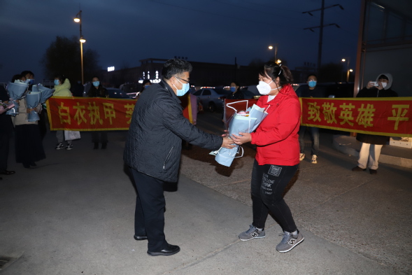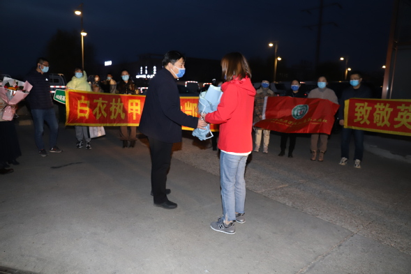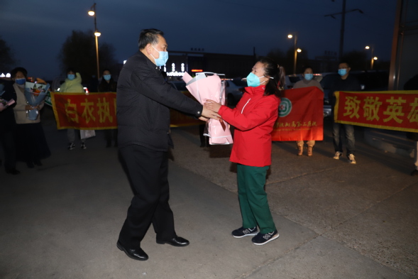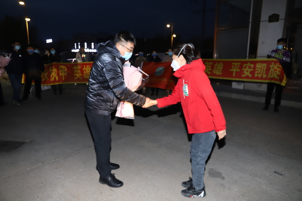 10月25日16:00,我院支援大庆、黑河核酸采样队20名白衣战士结束了为期7天的集中隔离休养,从定点隔离酒店乘车返回家中进行居家健康监测和休养。为全力做好医疗队员的后勤保障工作,我院为医疗队员专门准备了蔬菜、水果等生活物资。我院领导班子成员、医疗队员同事及家属前往隔离酒店迎接。