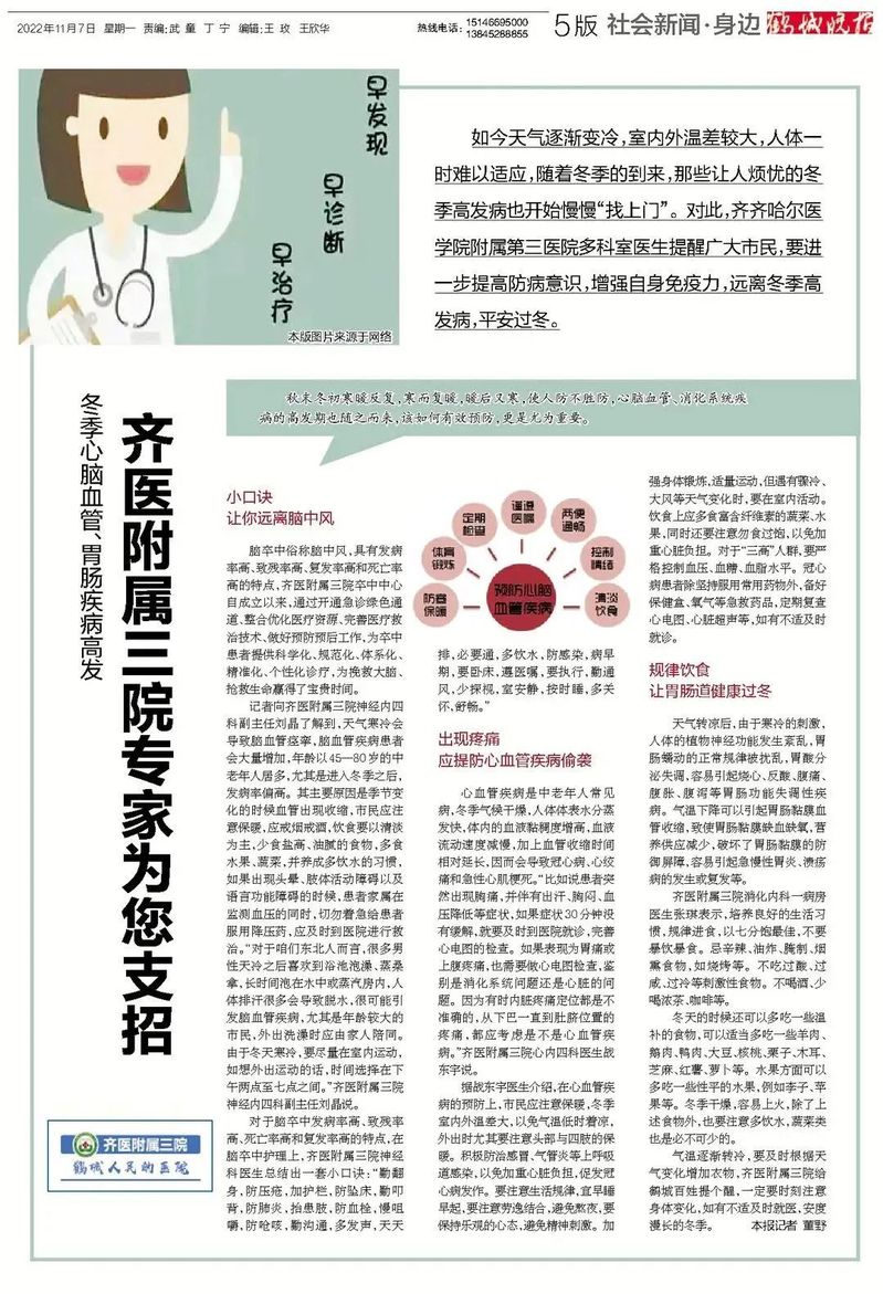 如今气温逐渐变冷,室内外温差较大,人体一时难以适应,随着冬季的到来,那些让人烦忧的冬季高发病也开始慢慢“找上门”。对此,齐齐哈尔医学院附属第三医院多科室医生提醒广大市民,要进一步提高防病意识,增强自身免疫力,远离冬季高发病,平安过冬。