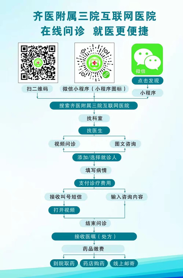 义诊首日,我院专家们为数十位患者进行了线上视频、图文问诊解答,为患者提供了优质便捷的服务。患者只需在手机微信小程序中进入到“齐医附属三院互联网医院”主界面后,就可以实现网上挂号、视频问诊、图文咨询、检验检查预约、报告查询、在线购药送到家、病历复印邮寄到家等服务功能。获得了患者们一致好评。
