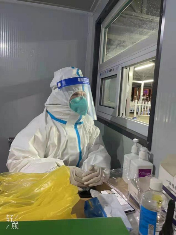 正值寒冬时节,连续十多日的核酸采样工作从未停歇。频繁的操作使队员们的手都冻僵了,脱下手套的那一刻都是又红又肿,管控人员的核酸采样工作需要上门入户完成,队员们身穿二级防护,背着各种消杀用品和采集用品,一层一层、一栋一栋地爬楼,一上午下来就是汗流浃背,脱下防护服的那一刻,身体被冷风吹得透心凉。队员们无一人抱怨,带病坚持,甚至在工作中出现晕厥也绝不退缩。队员们除了保质保量地完成核酸采样工作,还对社区人员进行疫情防控和个人防护进行指导培训,共同解决社区内存在的不规范问题。