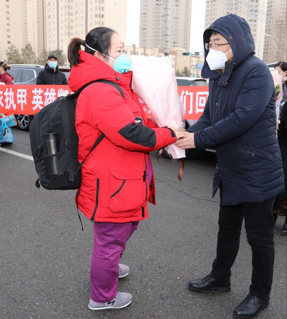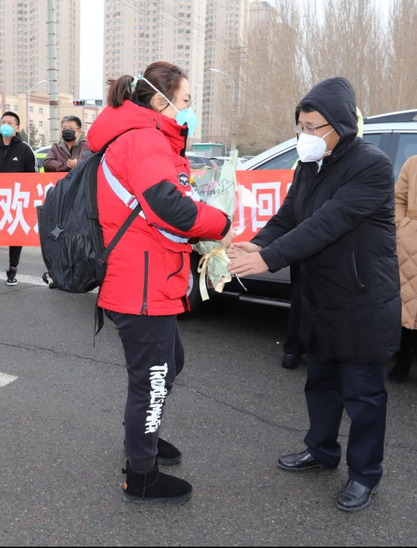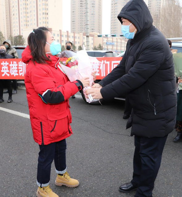 12月12日下午,我院支援哈尔滨抗疫医疗队圆满完成支援工作后凯旋而归。我院领导班子成员、干部职工及队员家属共同迎接白衣勇士们回家。