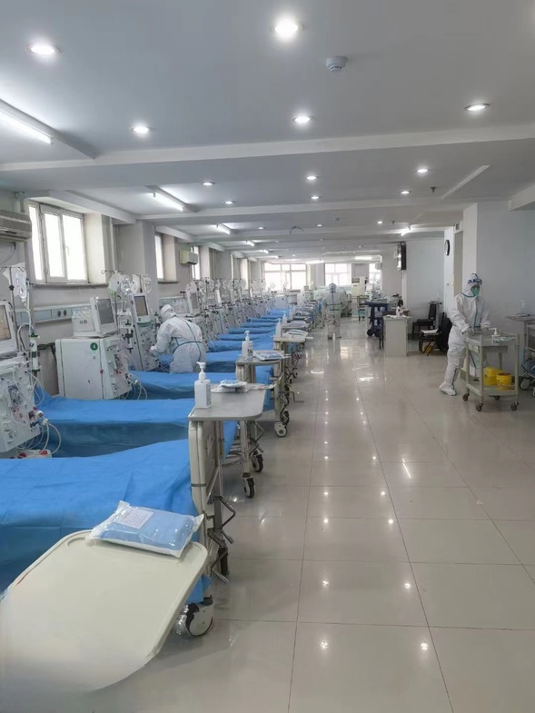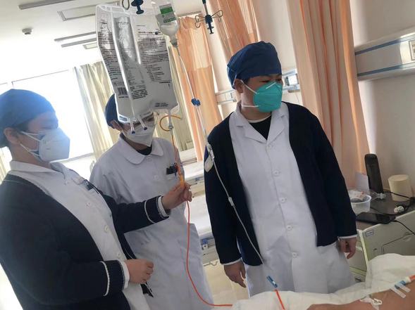 肾内科护士强忍身体不适,仍在坚守一线为患者做透析前准备。