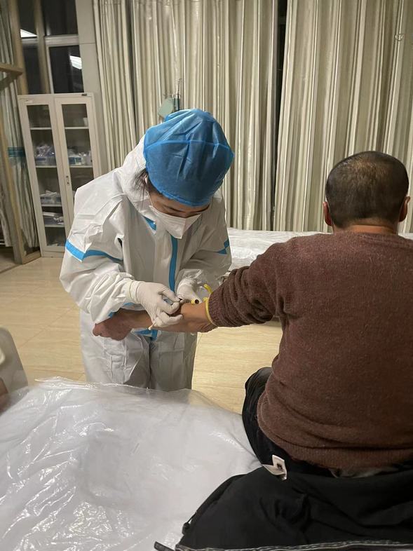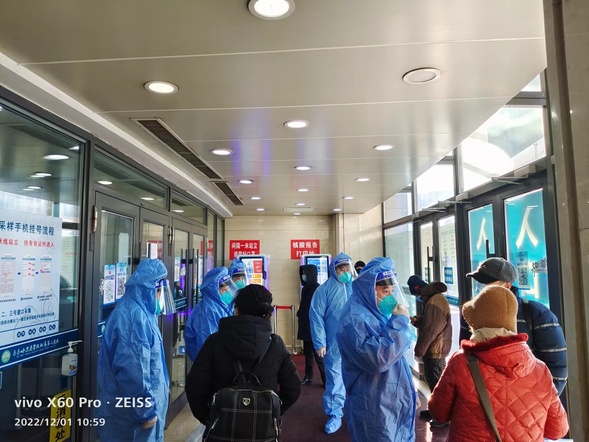 急诊科护士徐鑫鑫是没有得过新冠的护士、在医院急诊患者量如此大的情况下,她无所畏惧冲在最前面、为患者进行各种处置。