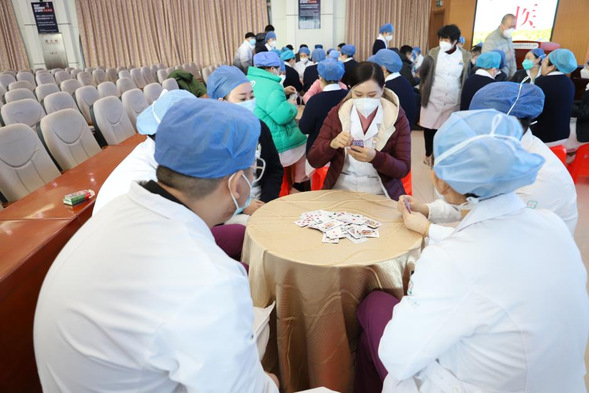 新年将至,为丰富职工文化生活,缓解职工工作压力,愉悦身心、增进职工之间的沟通与友谊,工会于1月16日下午,在我院门诊四楼多功能厅举办了第四届迎新春职工扑克对抗赛。此次活动以工会支会为单位组队,每个支会选派3支队伍(每队3人)组成一个团队,比赛分为A、B两组: 共8支团队——分别是外科一、外科二、内科一、内科二、门诊、联合一、联合二、联合三。抽签分组,每组四支队伍。第一阶段:小组循环。第二阶段:排位赛。