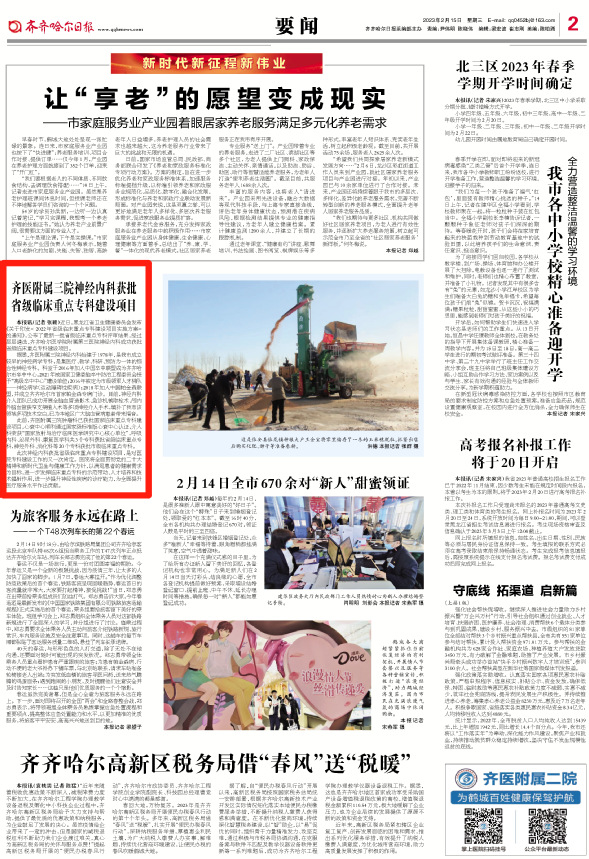 此前,齐齐哈尔医学院附属第三医院肿瘤科已获批国家临床重点专科建设项目,心衰中心顺利通过国家级标准版心衰中心认证,介入科荣获“国家放射与治疗临床医学研究中心核心单位”,呼吸内科、泌尿外科、康复医学科共3个专科获批省级临床重点专科,神经外科、消化科等20个专科获批市级临床重点专科。