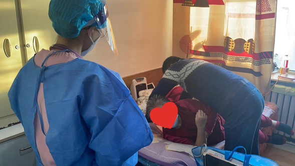 经医生认真查体后,患者状态尚可,只是说话上喘、气短、血氧低,心脏不好,肺部有炎症。护士严格执行无菌操作,为患者抽血拿回化验,对下一步治疗提供了有利的的参考依据。患者家属对中心的服务和医护人员的专业素养给予高度的评价,并表示由衷的感谢!老人更是激动,让家属扶她坐起来拽着医生的手,气喘吁吁的连声道谢。看起来很常见的画面,此时却让人感受到医患之间的真情传递!医生和护士带着这份肯定继续敲响了下一家,又下一家!