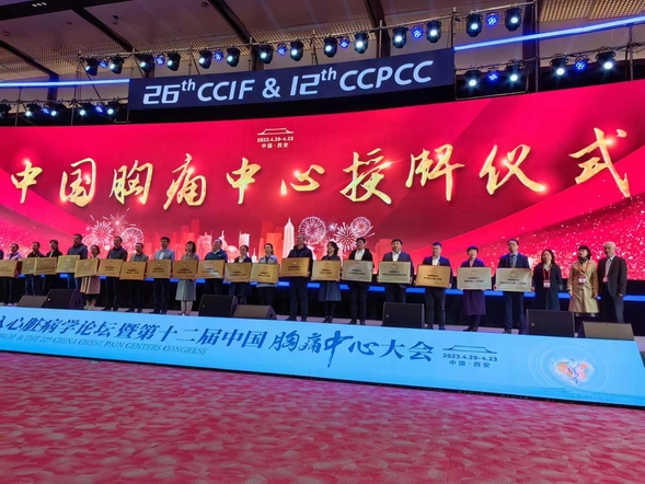 4月22日,第二十六届全国介入心脏病学论坛暨第十二届中国胸痛中心大会在西安国际会展中心召开。会上,中国胸痛中心联盟为2023年通过中国胸痛中心执委会再认证的各家胸痛中心进行授牌,我院榜上有名,我院副院长杨钰代表医院接收了中国胸痛中心授牌及证书。早在2018年4月20日,我院就通过了2018年第一批次中国胸痛中心评审。此次通过国家级标准版胸痛中心再认证,不仅标志着我院胸痛中心技术力量、综合救治能力和管理体系再次达到国家级标准和水平,也体现了我院胸痛中心内涵质量建设和心血管内科学科建设迈上新台阶。