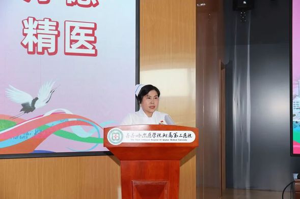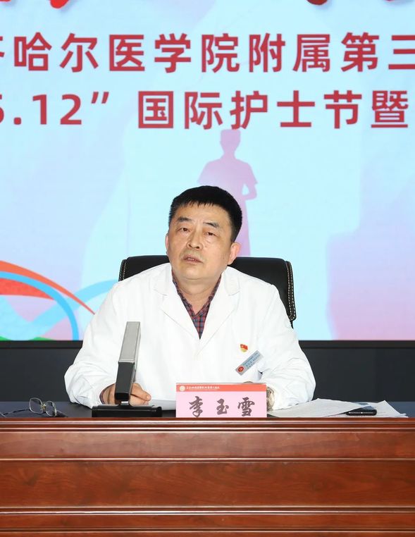 最后,党委书记李玉雪讲话。他代表院党委,向广大护理工作者致以节日的问候和美好的祝福,向受到表彰的模范护理工作者和团队表示热烈的祝贺,向已经退休仍继续关心支持护理事业发展的老一辈护理工作者表示崇高的敬意,向一直默默支持护理工作的家属们致以衷心的感谢。他对全院护理工作者一年来在护理服务、疫情防控工作等方面作出的突出贡献给予充分肯定,并对大家提出三点希望:一是以解放思想为先导,打造高质量“创新型”护理团队;二是以能力提升为抓手,打造高水平“学习型”护理团队;三是以作风建设为引领,打造高品质“服务型”护理团队。