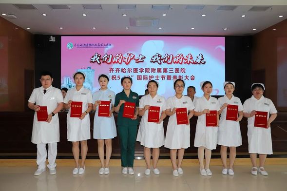 会上,纪委书记董晓明宣读《齐齐哈尔医学院附属第三医院关于表彰2022年度下半年护理服务明星的决定》《齐齐哈尔医学院附属第三医院关于印发2022年护理技能竞赛奖励决定的通知》,副院长孙茂林宣读《齐齐哈尔医学院附属第三医院关于表彰2023年度“5·12”国际护士节护理服务标兵、先进护理集体、优秀护士长、优秀护士的决定》。院领导为获奖个人及集体代表颁奖。
