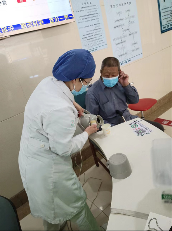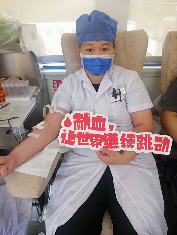 超声科党员为患者献血,热心为患者解答问题,为行动不方便患者倒水。
