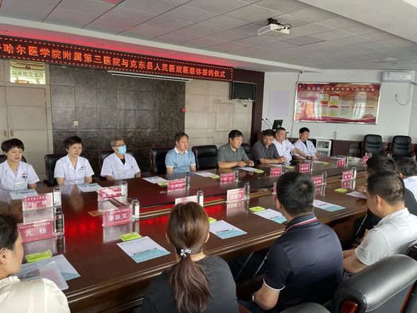 在签约座谈会上,我院副院长辜振刚向克东县人民医院领导班子成员介绍了我院的基本情况和近年来取得成绩。我院副院长辜振刚表示,克东县是齐齐哈尔最远的一个县,但我院和克东县人民医院有着深厚的渊源,疫情之前,两家医院就是兄弟单位,双方交流互动频繁。我院非常重视与克东县人民医院的合作,希望通过此次的医联体合作协议的签订,双方将在医院管理、学科建设、人才培养,包括专科联盟等方面,进行深入的交流协作,探索科学发展新模式,提升整体医疗服务能力与水平,共同搭建跨地区高水平的学术技术合作交流平台,打造以“患者”为中心的医疗服务体系,真正实现“医联体”的价值,共同管理,目标一致,造福两地患者。