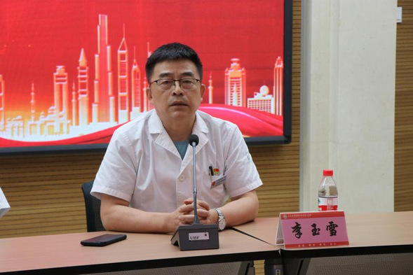 党委书记李玉雪表示十分感谢医学影像专业培养出孟鑫这么优秀的人才,看到现场医学影像中心年轻新鲜面孔感到十分欣喜。他表示,人才的传承、教育、培养是医院发展的根本,孟鑫同志作为医学影像团队杰出的代表,展现出了附三人的风采。他对孟鑫提出几点希望:一是要以严谨、求实工作作风和扎实、朴素的生活作风投身于工作中;二是要克服生活工作上的困难,遇到问题要依靠组织,积极向组织、向医院寻求帮助;三是要医治好患者,发扬救死扶伤的精神;四是要帮助当地培养、教育人才。最后他祝愿孟鑫在新疆期间工作顺利,生活愉快。