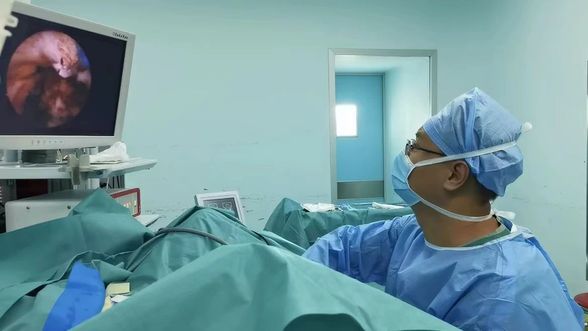 孙茂利副主任:该患者是因为尿血来到泌尿科进行治疗,检查时发现膀胱里面有一个肿瘤,直径约6厘米,利用半导体激光术将肿瘤基底给切掉,再用组织粉碎器把肿瘤完全取出来,手术时间大大缩短,术后患者恢复的也很快,微创手术运用在老年患者身上能够更好的体现其优势。