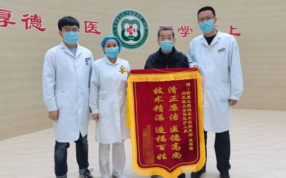 ▲患者向孙茂利和其他泌尿外科医生赠予锦旗