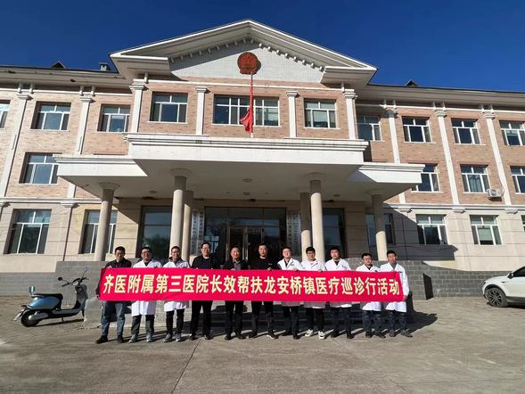 为了使乡村振兴工作深入民心、惠及百姓,做实做细乡村振兴工作,近日,在齐齐哈尔医学院驻龙安桥镇兴裕村工作队的积极协调下,医院的大力支持下,我院组建了巡诊专家团队积极开展乡村振兴、医疗帮扶工作,此次医疗队由我院神经外一科主任张艳国、神经内六科副主任任占军、呼吸与危重症医学科三病区副主任姜云飞、骨外一科副主任辛兆旭、血管外科副主任医师赵明宇、心内三科医生赵兴鹏、超声科医生于文龙组成,对富裕县龙安桥镇各村行动不便的慢病患者开展入户巡诊。
