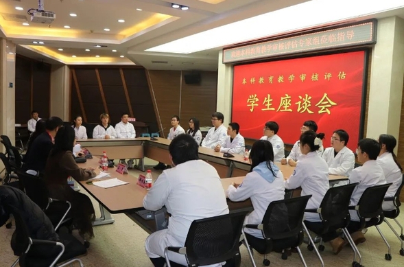汇报会结束后,专家组与我院各教研室教师代表、学生代表分别进行座谈。座谈会上,各位教师代表分享教学心得与教学过程中遇到的问题,专家组给予意见和建议;学生们分享了学习过程中的体会,专家组对学生的生活起居、学习工作各方面给予关心和问候。座谈会现场交流探讨,气氛十分热烈。