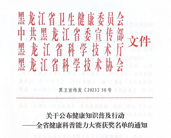 对此,我院积极组织动员作品创作上报,并取得优异成绩。肿瘤内二科主任李雪松报送的《早癌筛查 真的能救命!》、儿科副主任亢杨报送的《预防儿童性早熟 还您的孩子一个阳光童年》荣获视频类作品二等奖;眼科主任邢立臣报送的《近视预防三大误区 一起看看你中了几条》获视频类作品三等奖。获奖作品形式多样、内容丰富、通俗易懂、寓教于乐。