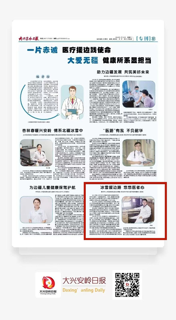 今日推送《大兴安岭日报》刊登的原文,让我们一起走进援边队员、核磁共振科周健的故事。