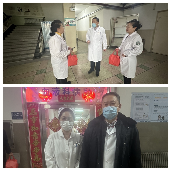 最是情深岁寒时,殷殷深情送温暖。2月9日,正值农历除夕,我院领导班子成员带领职能部门负责人走访慰问了住院患者及坚守在工作岗位的一线干部职工,向大家致以新春问候和美好祝福,并送上情意满满的慰问品,让干部职工们倍感温暖。
