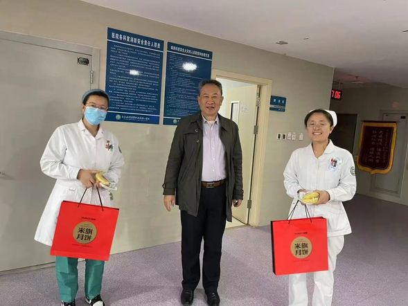 慰问组将承载着浓浓敬意的月饼、牛奶和水果送至队员家属和职工手中,为节日期间坚守岗位、默默奉献的职工送去了最美好的节日祝愿和最诚挚的佳节问候,让大家都感受到医院大家庭的关心和温暖。