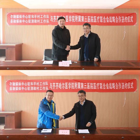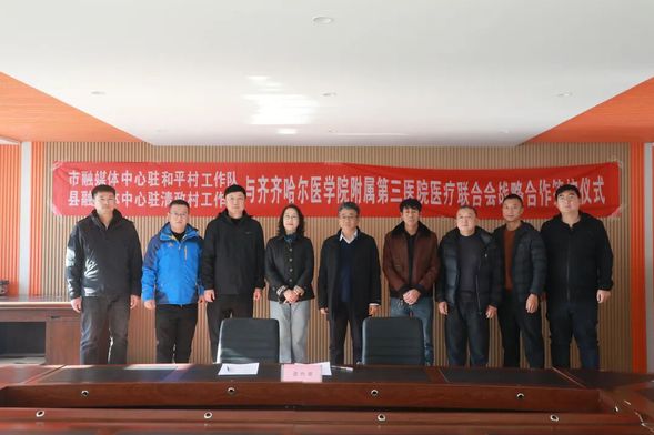 为进一步推动优秀医疗资源下沉,我院积极响应“齐医八十年,健康鹤城行”服务百姓健康义诊活动号召,11月6日,我院副院长辜振刚带领专家团队一行12人赴克山县和平村开展健康义诊,并与市融媒体中心驻和平村工作队、县融媒体中心驻清政村工作队签订医疗联合会战略合作协议。出席本次签约仪式的有市融媒体中心驻西河镇和平村工作队队长、第一书记季强及克山县融媒体驻西河镇清政村工作队队长、第一书记王勇,市融媒体中心副总编辑、中心机关党委副书记、纪委书记李岩。