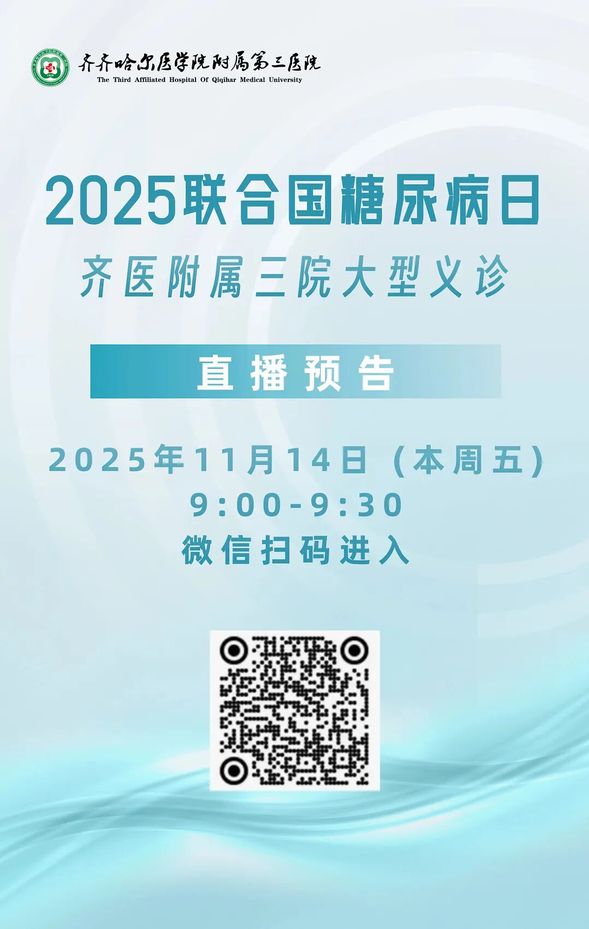 届时,齐齐哈尔医学院附属第三医院微信视频号【附三医者说】健康直播间将进行线上同步直播,可通过扫描下方二维码预约直播。