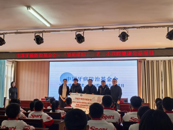 项目启动暨捐赠仪式在依安县第四小学举行。中国牙病防治基金会常务副秘书长马莉莉、我院医疗合作办公室李瑜鹏、依安县民政局副局长付宪芳、依安县教育局局长谢宪玲、第四小学校长卢和等出席仪式。活动期间,包括我院在内的来自全国多地的20余名口腔专业志愿者共同为该校1200余名学生提供了系统性的口腔健康服务。现场开展了生动有趣的爱牙健康课堂,手把手教授科学有效的刷牙方法,为学生进行细致的口腔健康检查,将检查结果反馈给学校与家长,并为符合适应症的儿童实施局部涂氟,积极预防一级和二级龋齿发生。此次活动累计发放口腔护理产品包1232份,切实将关爱落到实处。同时,项目组还为依龙区域敬老服务中心的老人们提供了口腔义诊并赠送护理包128份。